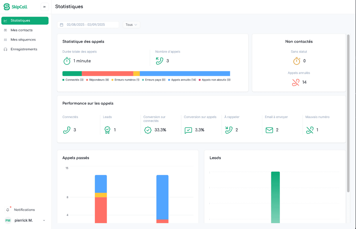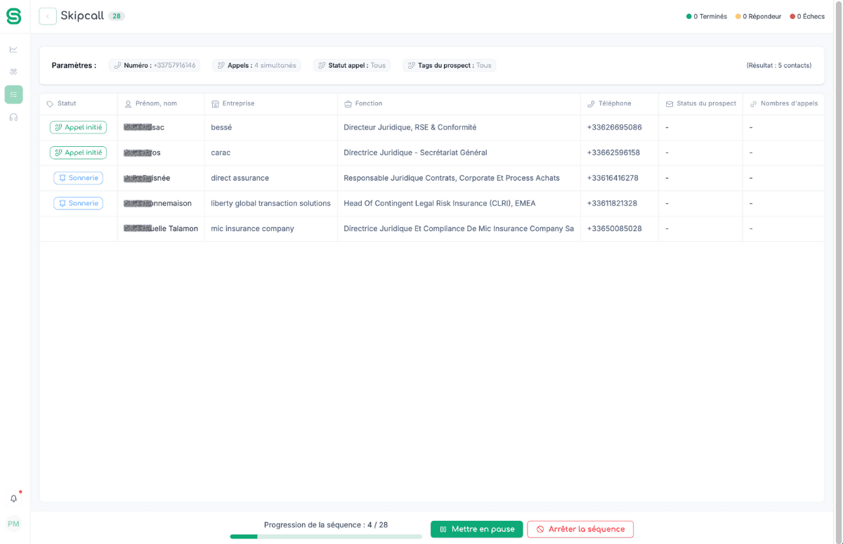 Skipcall est une plateforme de prospection téléphonique intelligente qui permet d’appeler jusqu’à 4 prospects en parallèle grâce à l’IA, en éliminant les répondeurs et les numéros erronés. Résultat : plus de conversations qualifiées, moins d’appels dans le vide.
